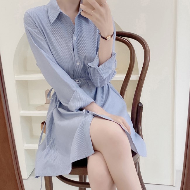 Ribbon Design Single-breasted Long Sleeve Shirt Women's All-match Top